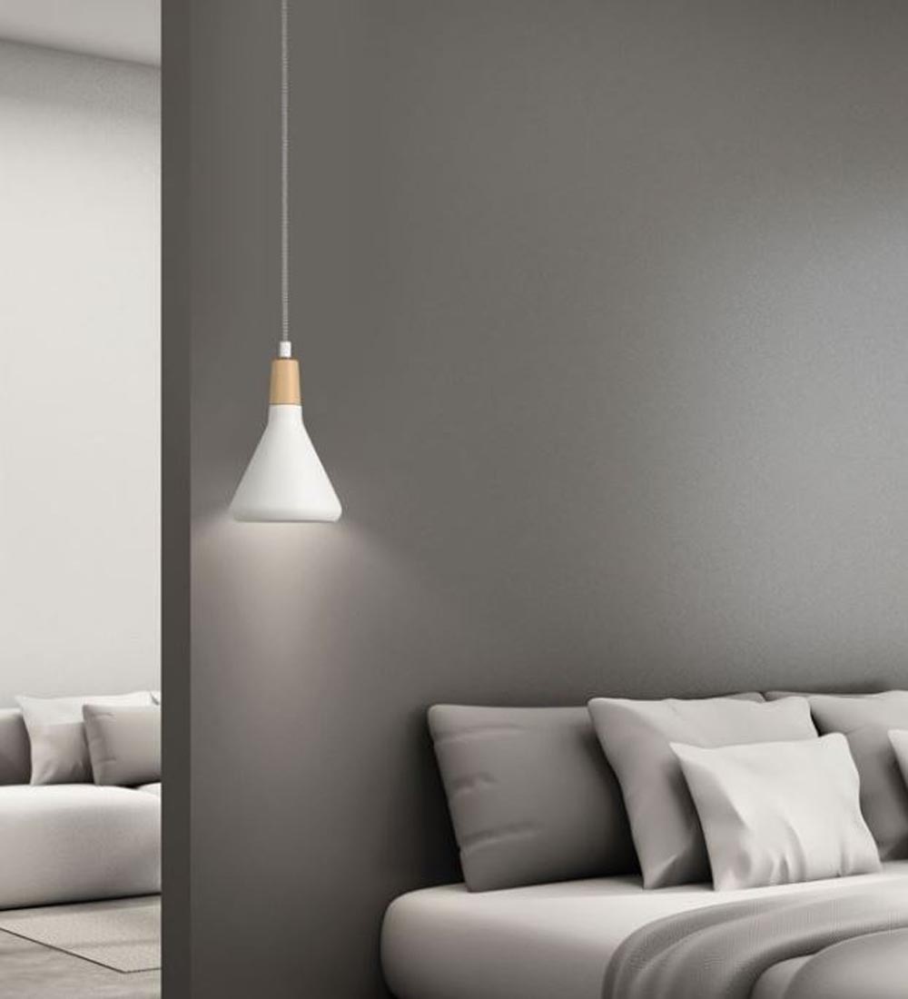 VENANZIO VÝPRODEJ Závěsné svítidlo, základna kov, stínítko kov s přírodním dřevěným detailem, povrch bílá, pro žárovku 1x40W, E14, 230V, IP20, tř.1, rozměry d=125mm h=200mm, vč.závěsu l=1200mm, lze zkrátit