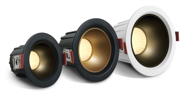 Stropní podhledové, bodové, Darklight, svítidlo, těleso kov, výměnný komínek černá, bílá, zlatá mat, LED 7W/560lm, 12W/960lm, 20W/1600lm, teplá 3000K, vyzař. úhel 45°, 230V, IP20, tř.2, rozměry dle typu.