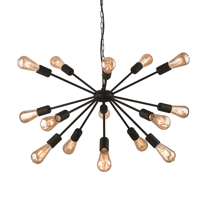 Závěsné svítidlo, devět/patnáct ramen, těleso kov, povrch černá, pro žárovku 9x60W/15x60W, E27, 230V, IP20, tř.1, rozměry 770x400mm, vč závěsného řetězu l=1100mm lze zkrátit