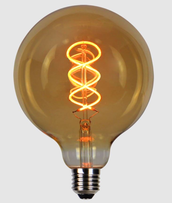 Světelný zdroj, žárovka, tvar hruškový, sklo zlaté/černé, LED 4W, E27, 210lm, teplá 1800K, Ra80, 230V, životnost 50.000 hod, IP20, d=125mm.