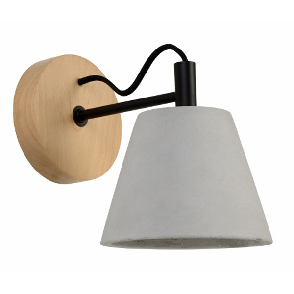 POSSIO - Nástěnné svítidlo, základna dřevo, ramínko kov černá, stínítko beton šedá, pro žárovku 1x40W, E14, 230V, tř.1, IP20, l=230mm, w=150mm, h=180mm