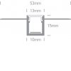Vestavný, zápustný bezrámečkový profil pro LED pásky do sádrokartonu, materiál hliník, povrch surový/černý, difuzor plast opál/černý, max šířka LED pásků w=5mm/10mm/20mm, rozměry dle typu.