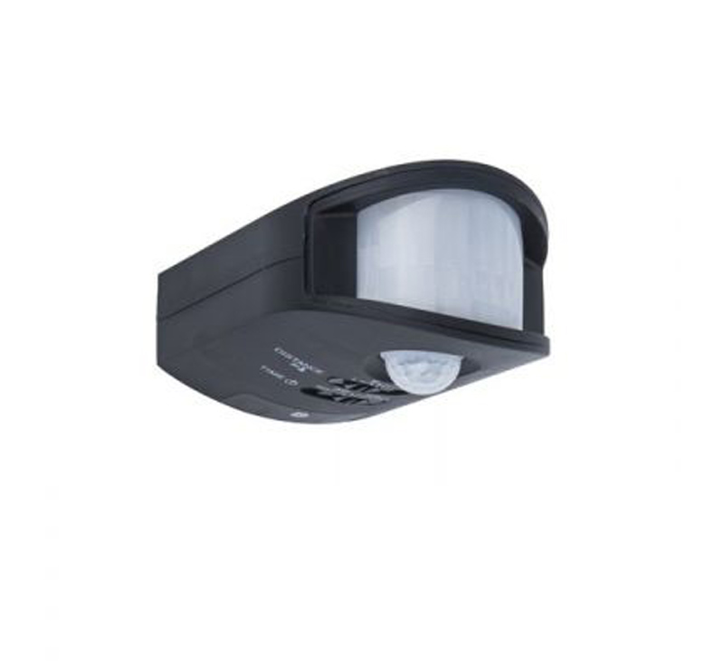 SUR čidlo pohybu - Nástěnný venkovní senzor pohybu, PIR, záběr čidla 180°, dosah 10m, nast. čas 10s-10min., plast, šedočerná, max 1000W, 230V, IP44, tř.2, rozměry 113x94x54mm