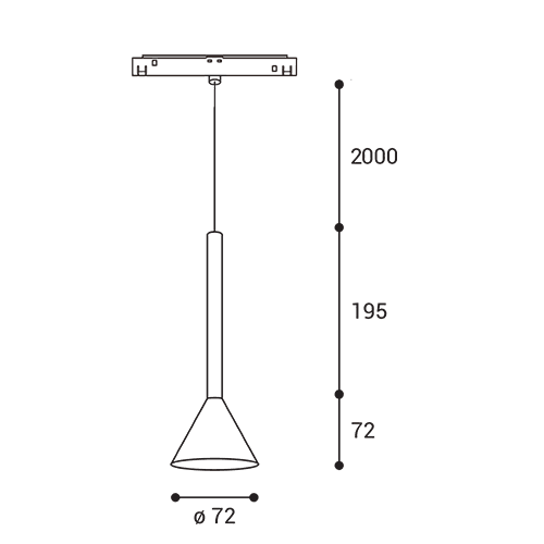 d=72mm, h=72mm, vč závěs kabelu l=2000mm, lze zkr. Uváděné rozměry jsou pouze informativní a výrobce je může změnit. |