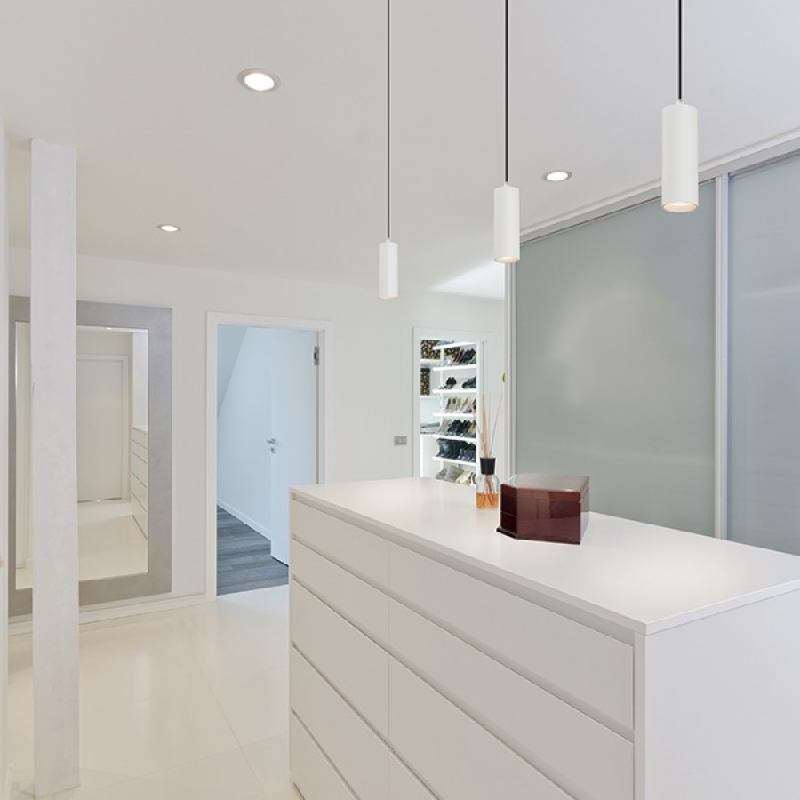 Závěsné svítidlo, materiál kov, povrch bílá, nebo zlatá, nebo černo zlatá, LED 12W, 1020lm, teplá 3000K, přímé stmív, 230V, IP20, tř.1, rozměry 160x56mm, vč kabelového závěsu l=1150mm lze zkrátit
