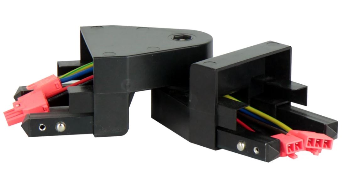 Konektor k propojení svítidel, umožňuje nastavení úhlu 90°-270° materiál plast černá/bílá, stmív. 0-10V dle typu, 230V, IP20.