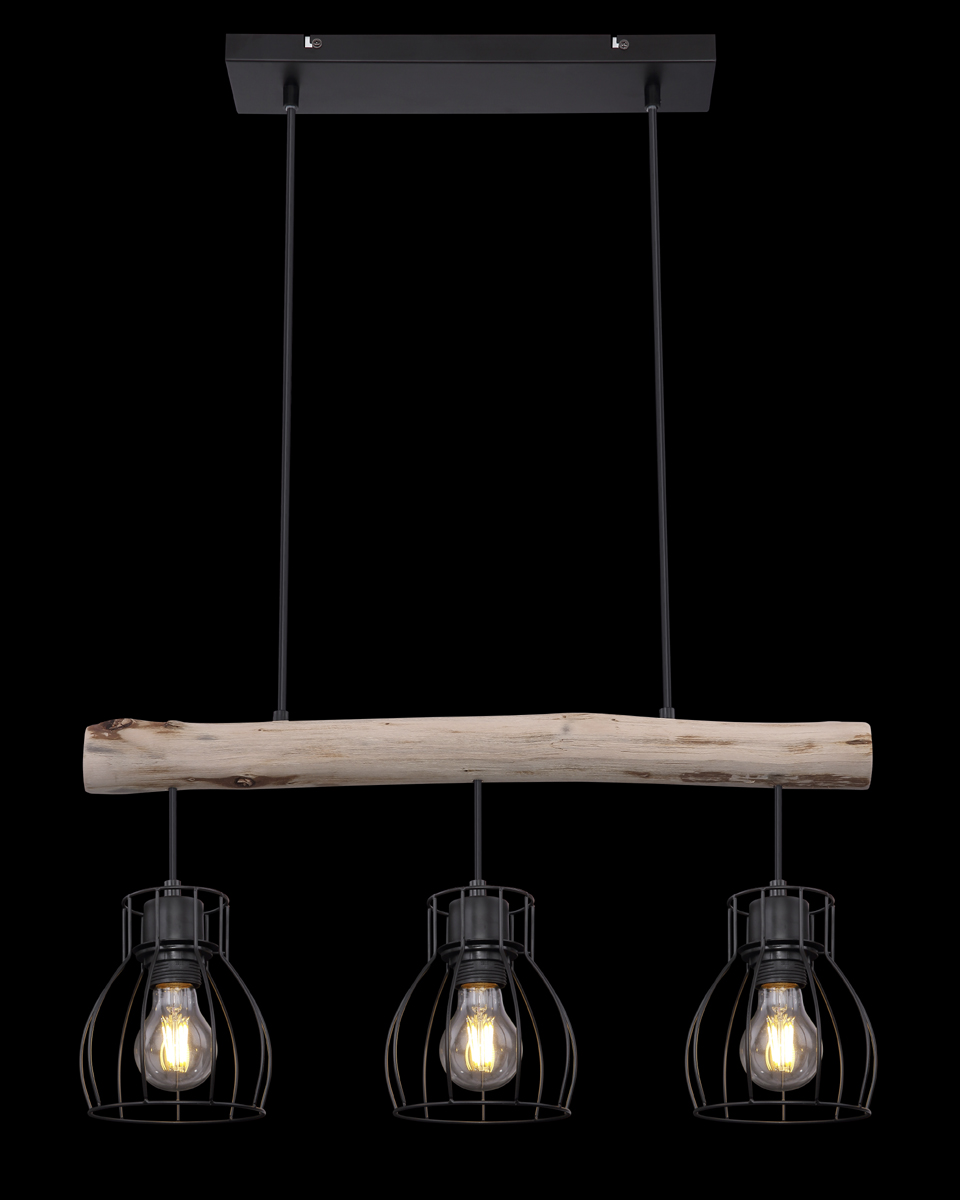 MINA 3x40W E27 - Závěsné svítidlo, těleso kov, povrch černá mat, dřevo přírodní, stínítko kov, povrch černá mat, pro žárovku 3x40W E27, 230V, IP20, tř. 1, rozměry stínítka d=136mm, vč. závěsu l=1400mm, lze zkrátit