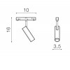 - Bodové svítidlo do magnetického systému, nastavitelný směr svícení, materiál kov, povrch bílá, LED 7W, 600lm, neutrální 4000K, vyzař. úhel 30°, 48V, IP20, rozměry d=35mm, h=160mm.