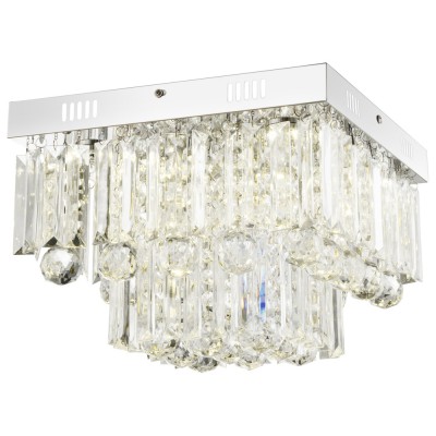 CLEO - Stropní, přisazené svítidlo, základna kov, povrch chrom, stínítko akrylové krystaly čiré, LED 6x3W, 6x250lm, neutrální 4000K, 230V, IP20, tř.1, rozměry 320x320x240mm
