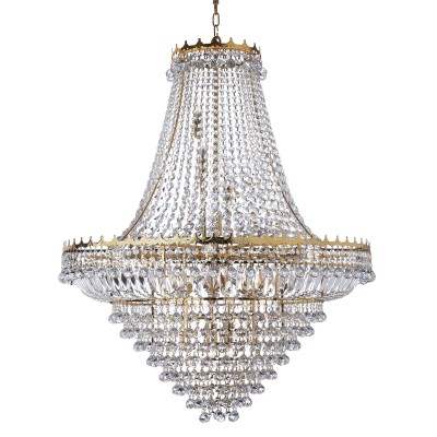 Závěsné svítidlo, základna kov, těleso kov, křišťálové ověsy, pro žárovku 13x7W, E14, 230V, IP20, tř.1. rozměry těleso d=1020mm h=1270mm, včetně závěsu l=3490mm, lze zkrátit