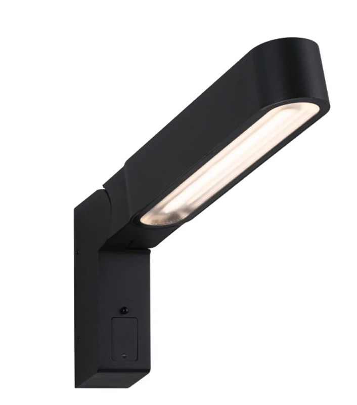 URail - Venkovní nástěnné svítidlo, nastav. sklon svícení, PIR senzor pohybu, záběr 120°, dosah 3-8m, kov, černá antracit, dif plast opál, LED 6W, 450lm, teplá 2700K, IP44, tř.2, 47x200x301mm, svítí dolů.