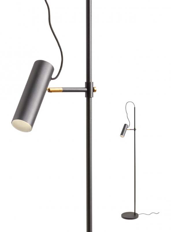 Stojací lampa, základna kov, povrch bílá mat/černá mat s mosaznými detaily, pro žárovku 1x40W, GU10, 230V, IP20, tř.2, rozměry d=250mm, h=1540mm, vypínač na tělese,