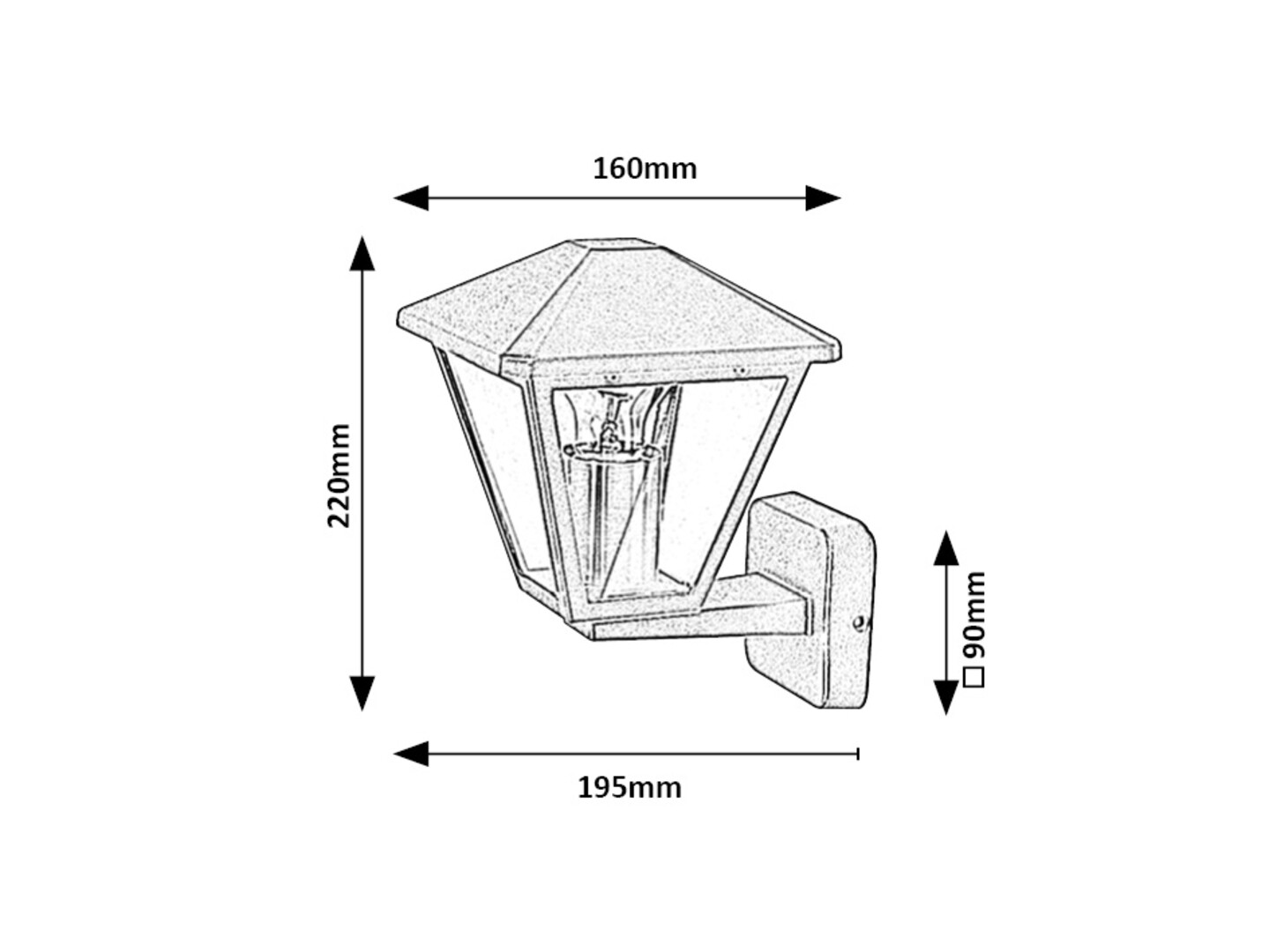 PARAVENTO - Nástěnné venkovní svítidlo, těleso kov, povrch černá, krycí sklo čiré, pro žárovku 1x40W, E27, 230V, IP44, tř.1, rozměry 160x220x195mm.