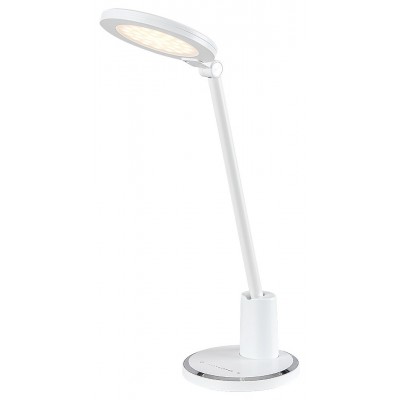 TEKLA - Stolní kancelářská lampa, těleso kov, povrch bílá, difuzor plast opál, LED 4,5W, přepín teplota CCT teplá 3000K, neutrální 4000K, denní 6000K, 350lm, stmív. 230V, IP20, tř.2, rozměry d=150mm, h=430mm.