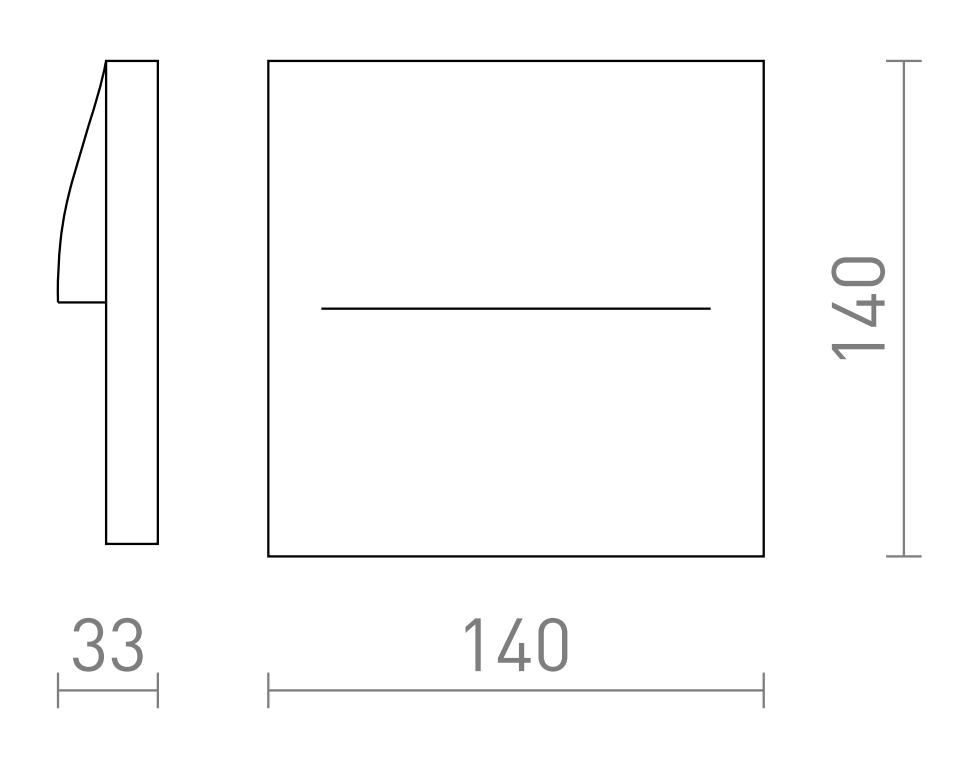 BOBO SQ - Nástěnné, venkovní svítidlo, těleso hliník, povrch černá, sklo čiré, LED 3W, teplá 3000K, 212lm, Ra80, 230V, IP65, tř.1, rozměry 140x140x33mm, svítí dolů