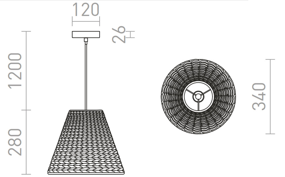 | Rozměry | 340x280mm, vč závěsu l=1200mm. Uváděné rozměry jsou pouze informativní a výrobce je může změnit. |