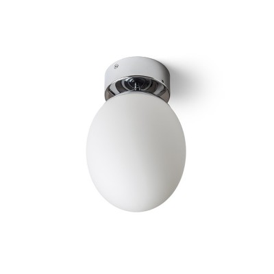 MERINGUE - Stropní přisazené svítidlo, základna kov, povrch chrom, difuzor sklo opál, pro žárovku 1x12W, E27, 230V, do koupelny IP44, rozměry d=160mm, h=260mm.