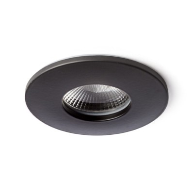 WATERBOY R - Stropní, vestavné, bodové svítidlo, těleso hliník, povrch černá mat, sklo čiré, LED 10W, teplá 3000K, 550lm, 230V, trafo na kabelu, do koupelny IP65, d=83mm, h=80mm