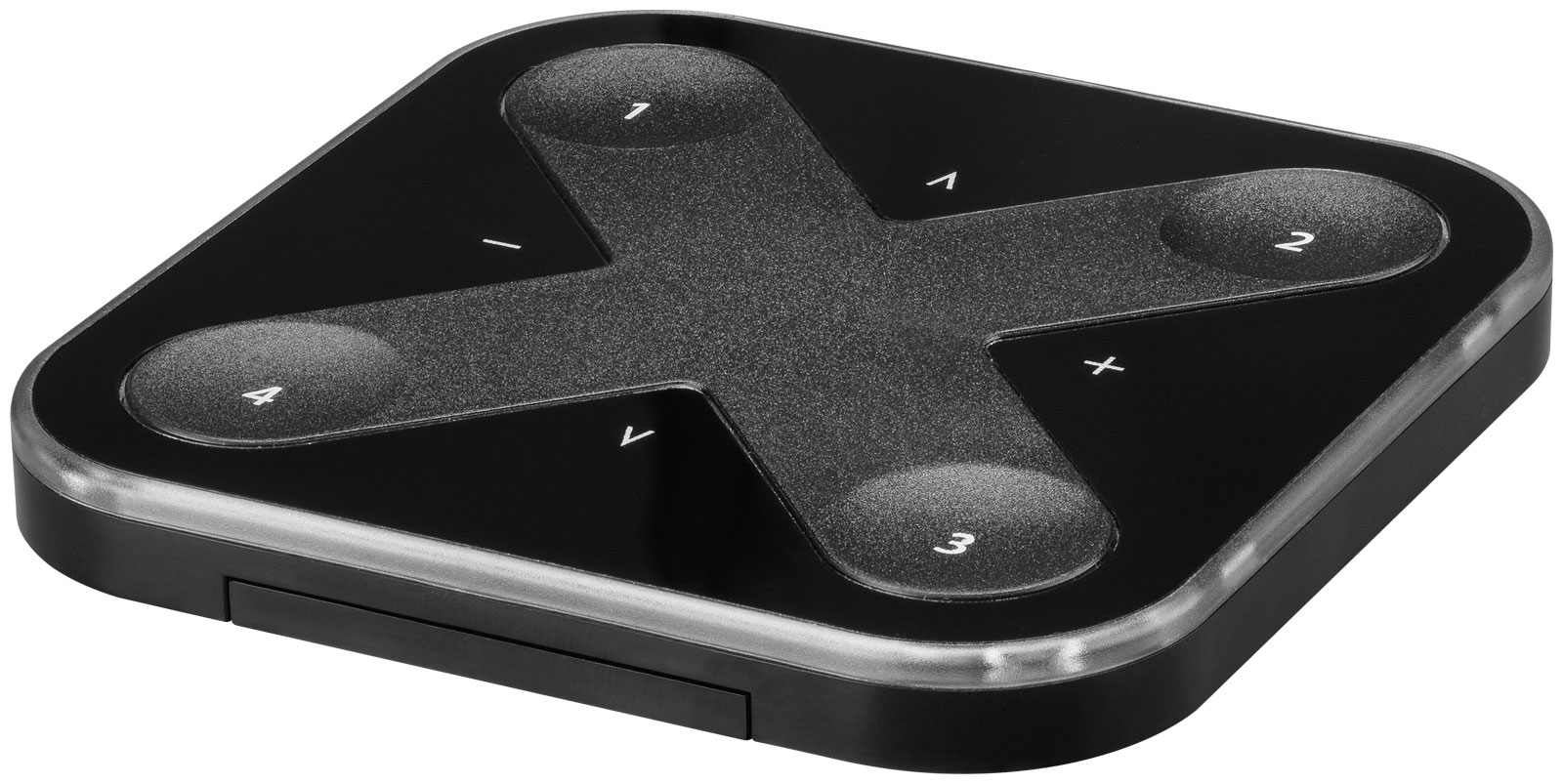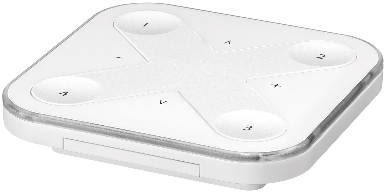 RF bezdrátový nástěnný ovladač, Casambi černý, nebo bílý, fce za/vyp, stmívání, nastavení CCT teploty světla, 4 scény, napájení baterie CR2430, IP20, rozměry 90c90x12mm