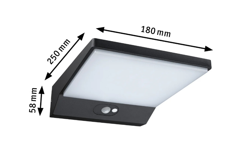 Venkovní nástěnné svítidlo, PIR senzor pohybu, záběr 120°, dosah 3-5m, těleso nerez, povrch černá antracit, difuzor plast opál, LED 7,4W/10,5W, teplá 3000K, 230V, IP44, tř.1, rozměry dle typu.