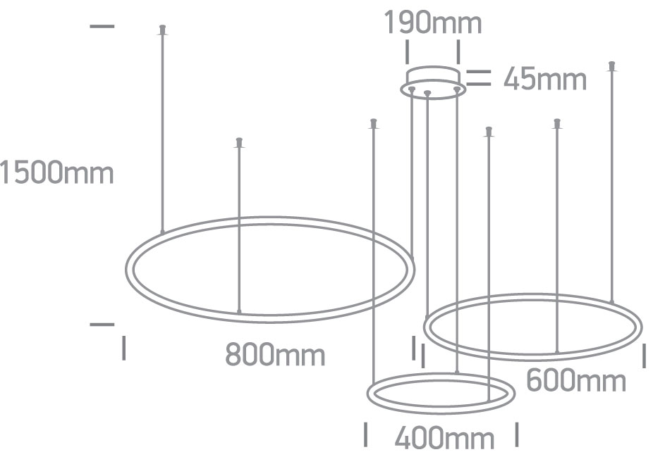 | Rozměry | d=400+600+800mm, vč. závěsného kabelu l=1500mm, lze zkrátit. Uváděné rozměry jsou pouze informativní a výrobce je může změnit. |