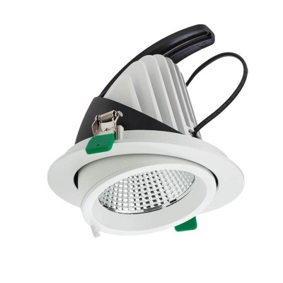 XDOWN - Vestavné, bodové svítidlo, výklopné 45°, materiál hliník bílá, krycí plast transp, LED 33W, 3600lm, teplá 3000K, UGR<16, Ra90, vyzař. úhel 38°, 230V, IP20, tř.2, d=158mm, h=130mm, vč trafa