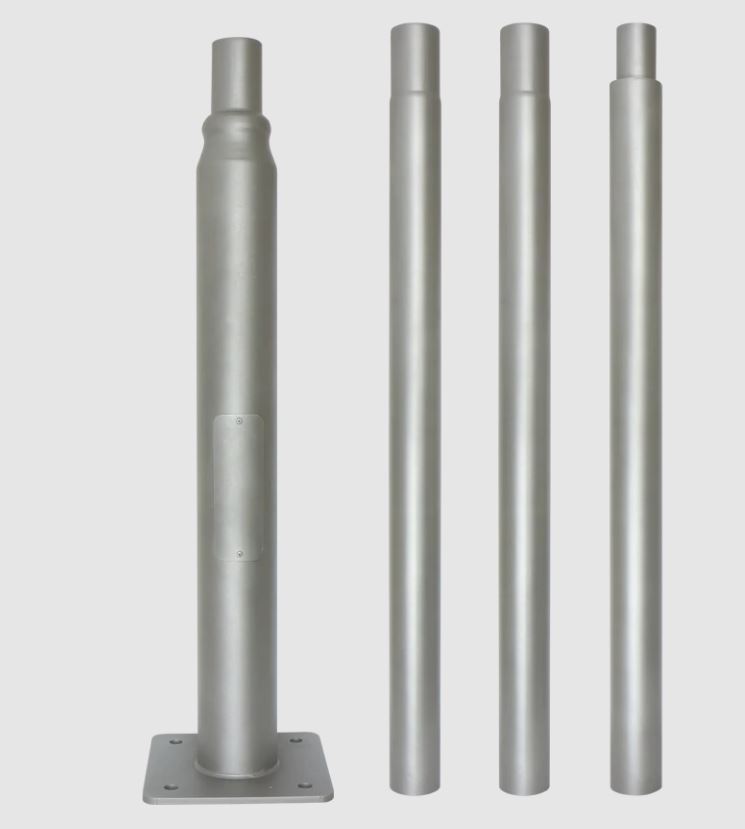 Základna pro kotvení stožáru veřejného osvětlení do země, rozměry šroubů 180x180mm, h=300mm, materiál kov, povrch galvanizovaný