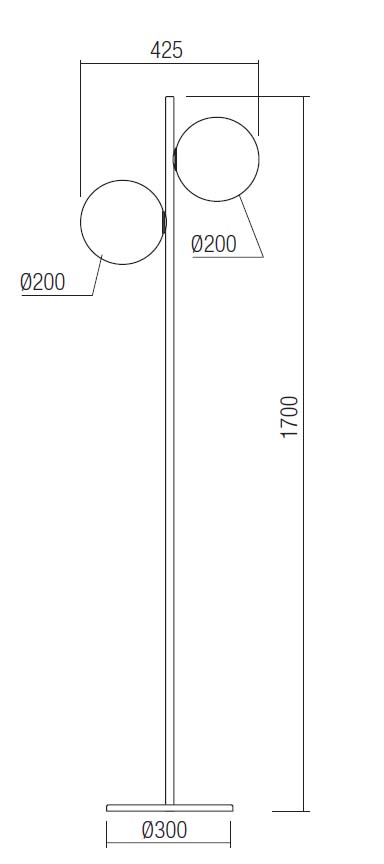 Stojací lampa, základna kov, povrch broušený bronz/černá mat, difuzor sklo opál, pro žárovku 2x42W, E27, 230V, IP20, tř.2, rozměry š=425mm, h=1700mm, vypínač na kabelu.