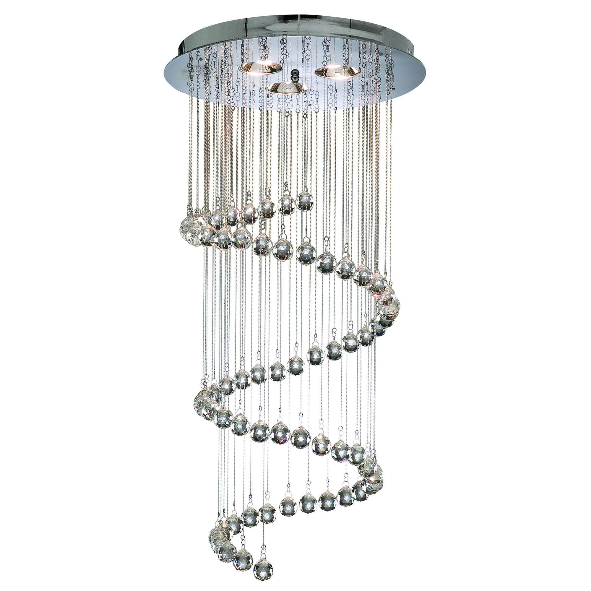 SPIRAL - Stropní přisazené svítidlo, základna kov, povrch chrom stříbrná lesk, křišťálové ověsy, pro žárovku 5x7W, G9, 230V, IP20, tř.1. rozměry d=390mm h=800mm