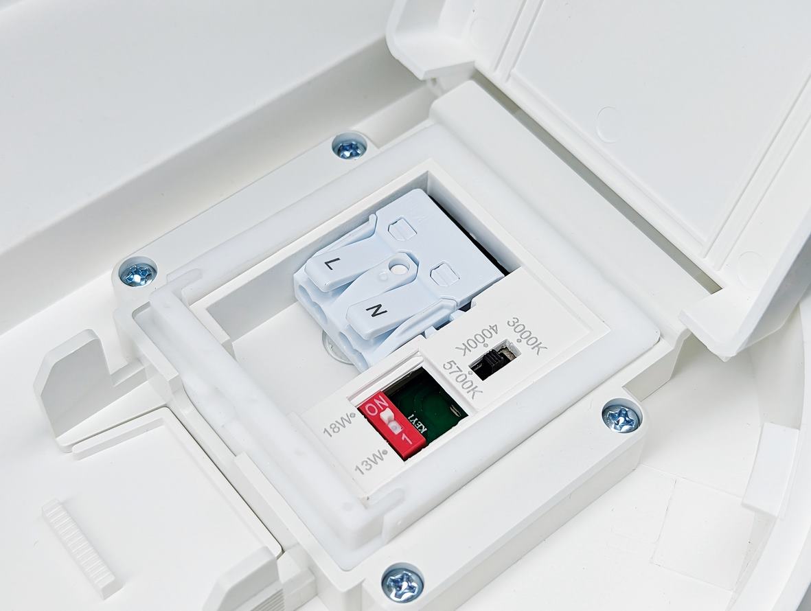 | Výhodné vlastnosti | CCT pomocí přepínače uvnitř svítidla, lze přepínat výkon světla a teplotu světla teplá 3000K neutrální 4000K, denní 5700K. Tímto lze bez úpravy elektroinstalace přepnout teplotu světla. |