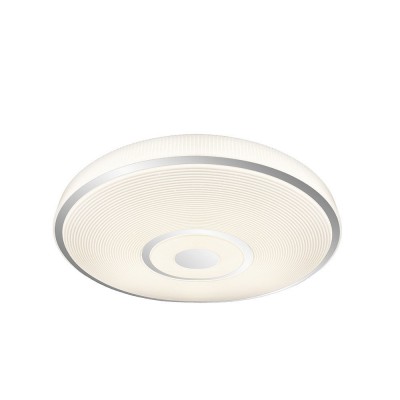 LIBERTY - Stropní svítidlo, těleso kov, povrch chrom, dif plast opál se třpy. efektem, LED 24W, CCT nastav teplota teplá 3000K-denní 6500K, 2500lm, dálk ovl. stmív., 230V, IP20, rozměry d=380mm, h=65mm.