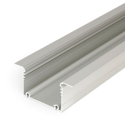 Vestavný, zápustný profil pro LED pásky, materiál hliník, povrch elox šedostříbrný mat, max šířka LED pásků w=32mm, rozměry 77x36mm, l=2000mm