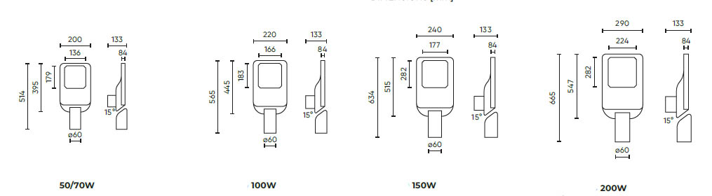 VILI 50W/70W/100W/150W/200W IP66 Veřejné osvětlení