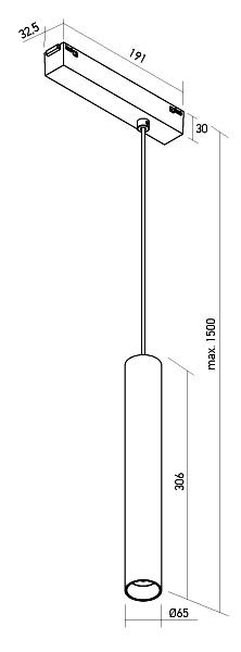 d=65mm, h=306mm, vč závěs lanka h=1500mm, lze zkrátit. Uváděné rozměry jsou pouze informativní a výrobce je může změnit. |