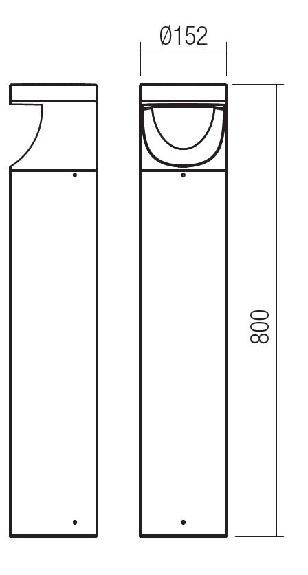 Rozměry d=152mm, h=800mm. Uváděné rozměry jsou pouze informativní a výrobce je může změnit.