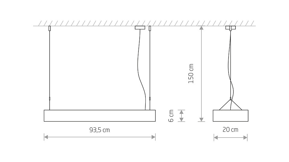 Rozměry 935x200mm, vč. závěs kabelu l=1500mm, lze zkrátit.Uváděné rozměry jsou pouze informativní a výrobce je může změnit.