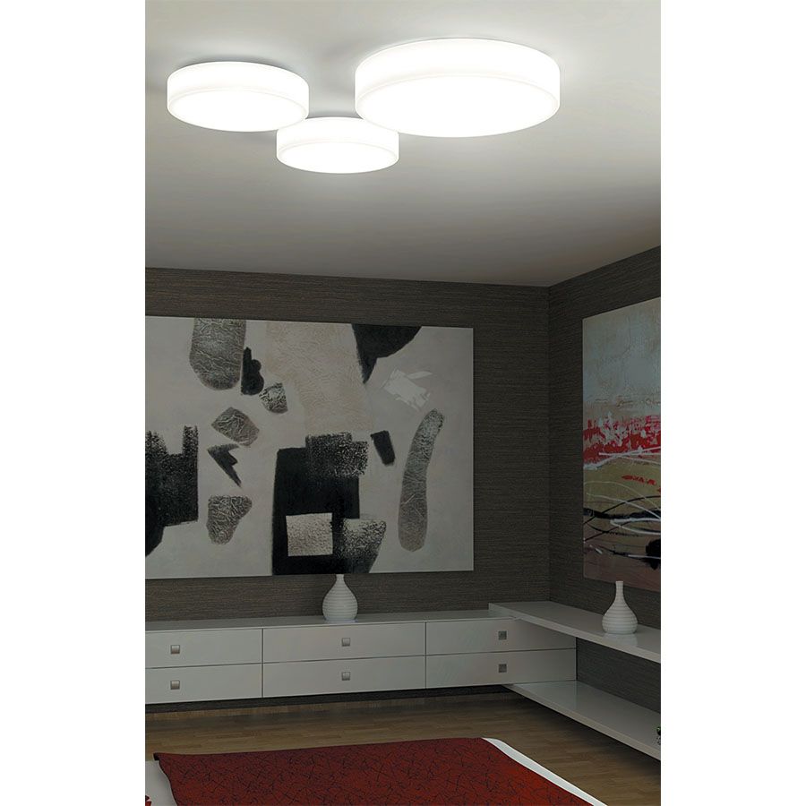 Stropní svítidlo kruhové základna kov, povrch bílá, difuzor sklo satén opál mat, pro žárovky, nebo LED, stmívání dle typu DALI, TOUCH/DIM, 230V, IP20, rozměry dle typu